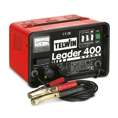 Chargeur de batterie Telwin Leader 400 Start Telwin Leader 400 Start est un chargeur de batterie et un démarreur pour charger des batteries à électrolyte libre (WET) avec une tension de 12-24V et démarrer n’importe quel type de moteur à essence. Ses principales caractéristiques sont: sélection de la charge normale, charge rapide (BOOST), démarrage rapide, affichage du courant de charge et de démarrage, protection contre les surcharges et inversions de polarité. Tension secteur (V50-60Hz) 230-1ph Démarrage / puissance absorbée caica (Kw) 6,4 / 1 Charge / tension de démarrage (V) 12-24 Courant de charge effectif 12V (A) 45 Courant de charge conventionnel 12V (A) 30 Courant de pointe au démarrage (A) 300 Courant de charge conventionnel (A) 180 Positions d’ajustement (Nr) 3 Dimensions du produit (Cm) 26,5×34,5×23 Poids (kg) 10,9