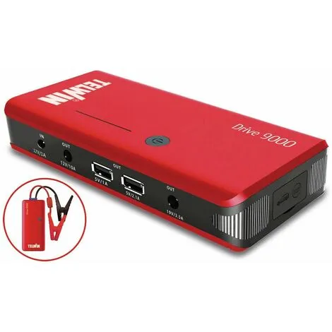 ) Démarrage de véhicules (12 V), grâce à la capacité élevée de la pile au lithium Pile Lithium haute performance Caractéristiques : 2 ports USB 2 lampes LED Housse de rangement Câbles de démarrage avec contact à inverseur Set de fiches et d’adaptateurs, pinces de démarrage pour batteries de voitures 12 V La pile au lithium maintient la charge pendant une longue période, sans devoir recharger