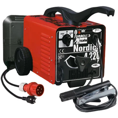 Poste à souder Telwin Nordica 4.220 Poste de soudage à électrode, MMA, en courant alternatif (AC). Réglage continu du courant de soudage. Protection thermostatique. Electrodes utilisables: rutiles. Fourni avec accessoires de soudage MMA. Composition: Poste à souder Telwin Nordica 4.220 Câble de masse 1.80m Porte électrode 1.80m Marteau brosse Caractéristique: Tension: 230 / 400 V Courant d’alimentation: 20 / 10 A Courant de soudage MMA: 55-190 A de baguette de soudure: 2 à 4 mm Poids: 19.4 Kg Dimensions: Longueur: 57.5 cm Largeur: 32.5 cm Hauteur: 36 mm