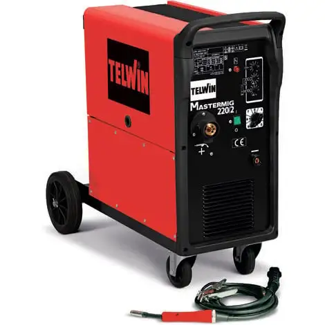 Poste à souder Telwin Mastermig 220/2 Poste de soudage à fil MIG-MAG/BRASAGE. Egalement prévu pour soudage en continu et par points avec régulation électronique du temps de pointage. Les kits en option permettent également le revenu des tôles et le cloutage. Utilisation universelle pour différents types de matériaux tels que acier, acier inox, aciers à haute résistance et aluminium. Fourni avec accessoires de soudage MIG-MAG. Composition: Poste à souder Mastermig 220/2 Câble de masse DX25 Torche MIG/MAG MT15 – 3m Galet: 0.6 – 0.8 mm Détendeur avec 2 manomètres Caractéristiques: Tension: 230 / 400 V Courant d’alimentation: 16 / 10 A Courant de soudage MIG/MAG: 20-220 A Fil acier: 0.6 à 1 mm Fil inox: 0.8 à 1 mm Fil alu: 0.8 à 1.0 mm Fil brasage: 0.8 à 1.0 mm Poids Bobine max: 15 Kg de bobine max: 300 mm Poids: 56 Kg Dimensions: Longueur: 87 cm Largeur: 45.3 cm Hauteur: 80 cm