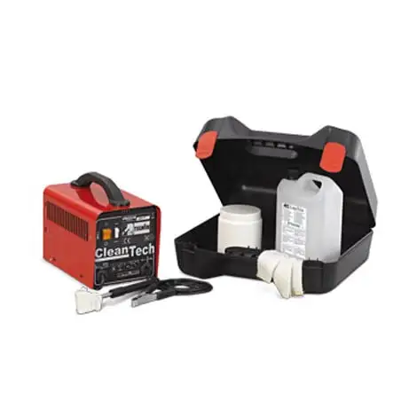 Système de nettoyage + Kit TELWIN Cleantech 100 Le système de nettoyage Telwin Cleantech 100 nettoie toutes les perles de soudage TIG, MIG, rendant la pièce soudée avec un éclat jamais vu auparavant. Le kit Cleantech est le nouveau système qui facilite et accélère les opérations de nettoyage sur l’acier inoxydable soudé avec Tig ou Mig. Telwin Cleantech élimine complètement tous les effets de coloration et d’oxydation qui se produisent normalement sur la pièce pendant le processus de soudage grâce à une réaction électrochimique instantanée, conférant à l’acier inoxydable sa brillance caractéristique. Le kit Cleantech est particulièrement utile dans tous les processus où la performance esthétique du matériau est très importante. Kit Accessoires inclus Constitué 10 tampons cod.980320 n.1 réservoir de 3 litres de nettoyant liquide cod.322905 1 pointe de nettoyage 1 poignée n. 1 sac avec des sangles en nylon pour le montage des tampons sur la pointe de nettoyage Tension secteur (V50-60Hz) 230-1ph Positions d’ajustement (Nr) 2 Dimensions du produit (mm) 345x215x280 Poids (kg) 14.4